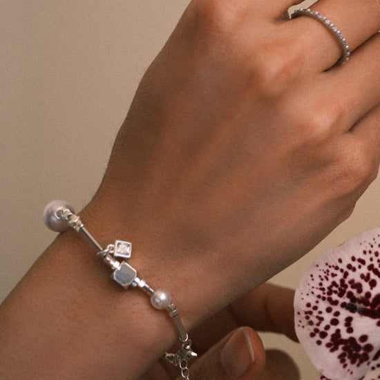 Diseño de silueta delgada con aplicaciones tipo perla y zirconias en todo el contorno