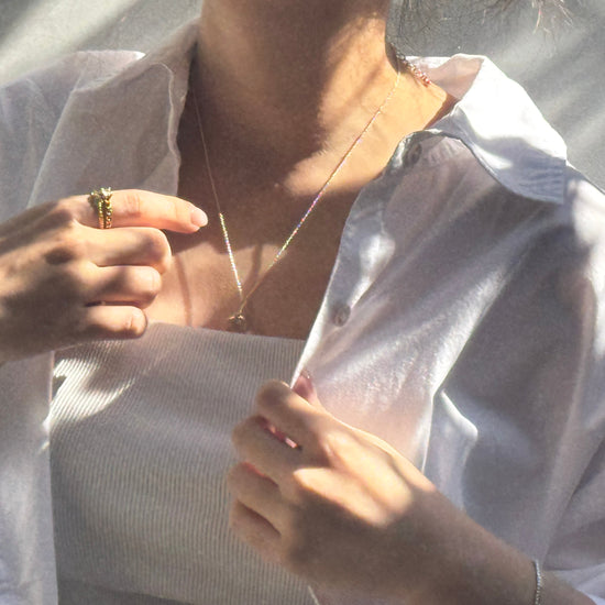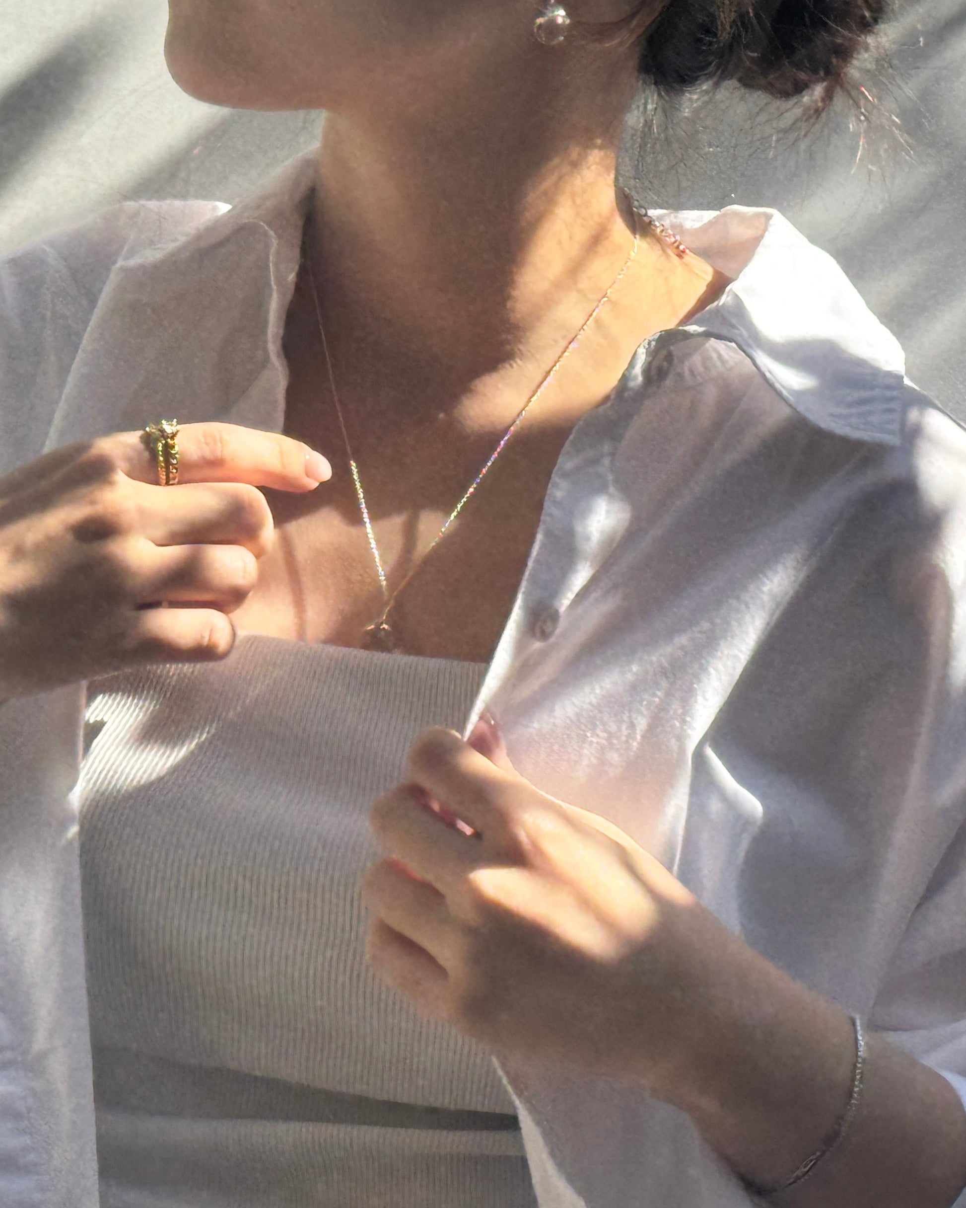 Diseño minimalista que destaca por su colgante en forma de gota cristalina