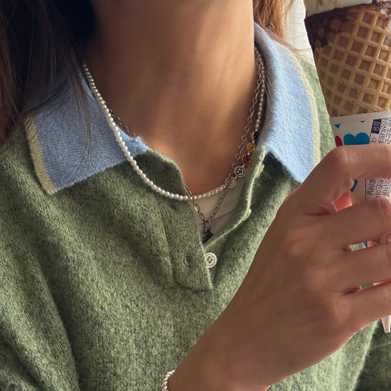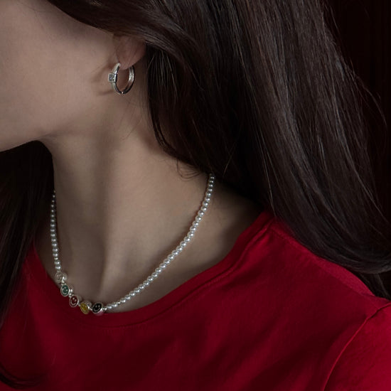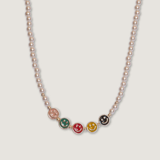 Diseño de perlas con charms de sonrisa en tonos vibrantes