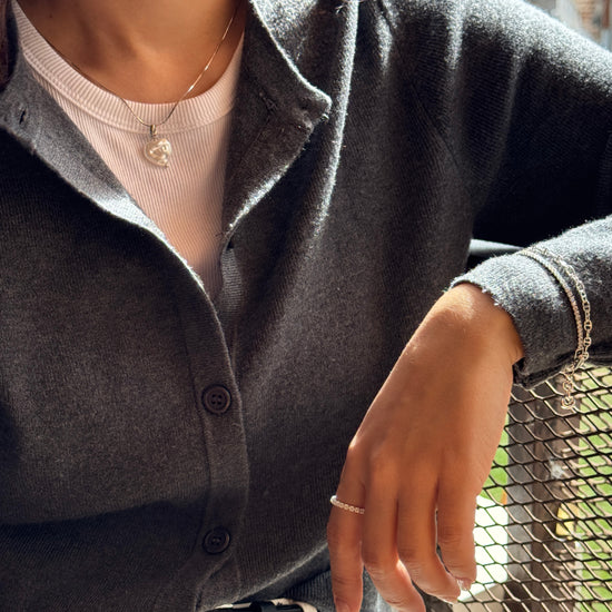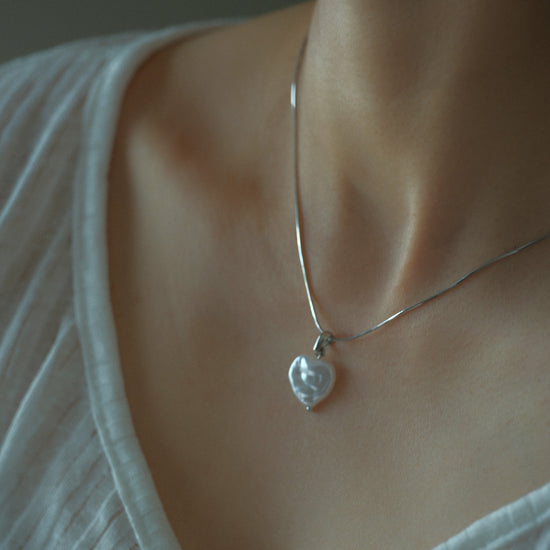 Corazón blanco nacarado con reflejos suaves y naturales.