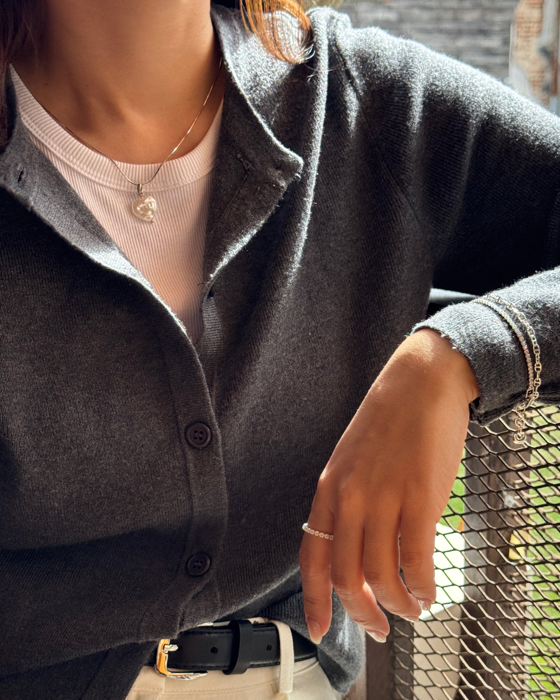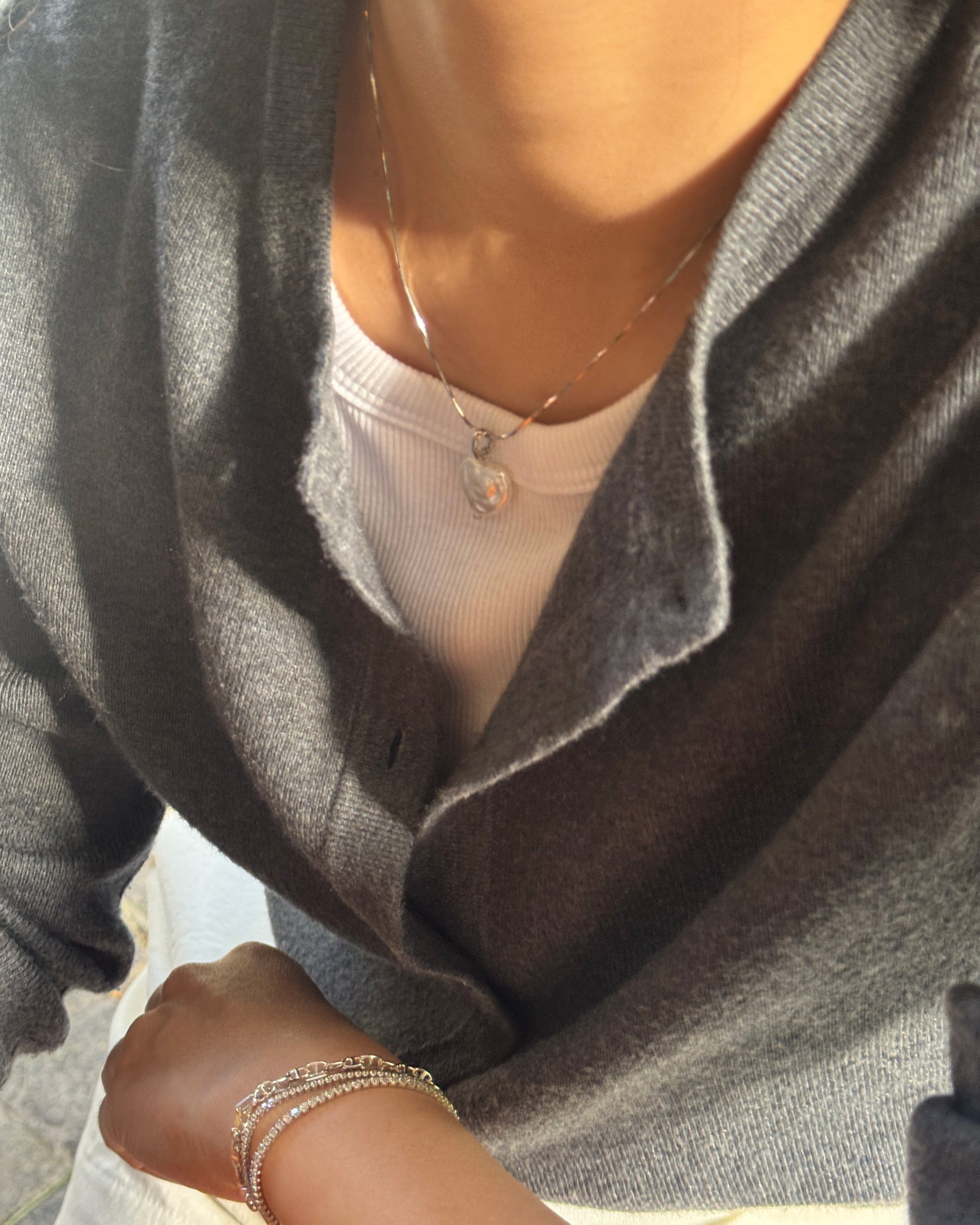 Fina cadena de con colgante de perla barroca