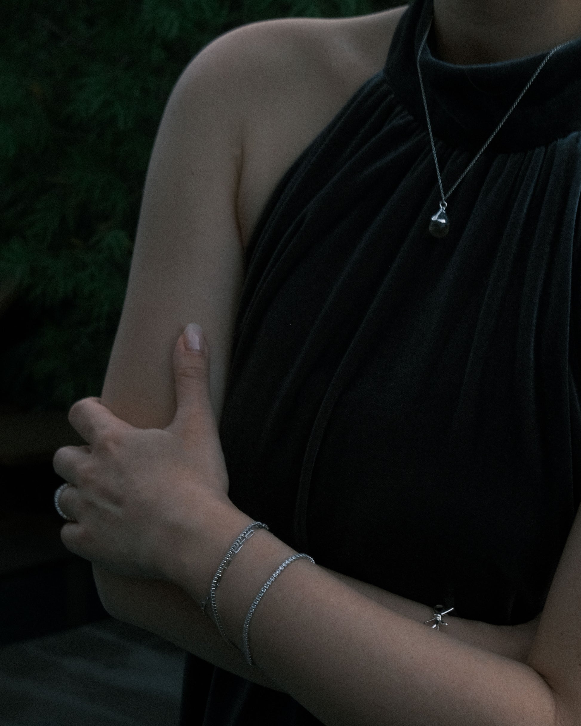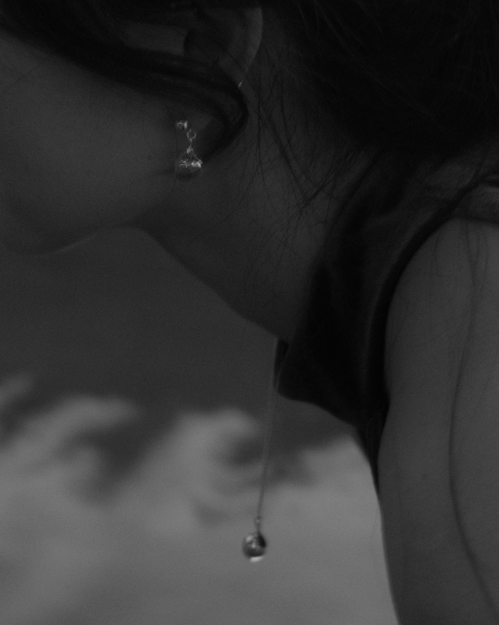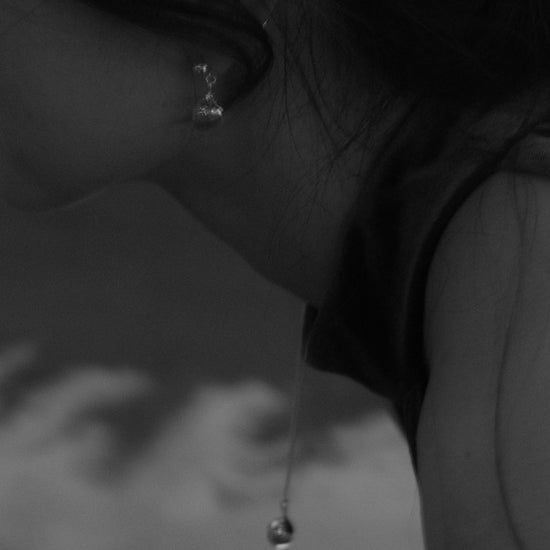 Pendiente: Latón bañado en plata y acrílico - Dimensiones: