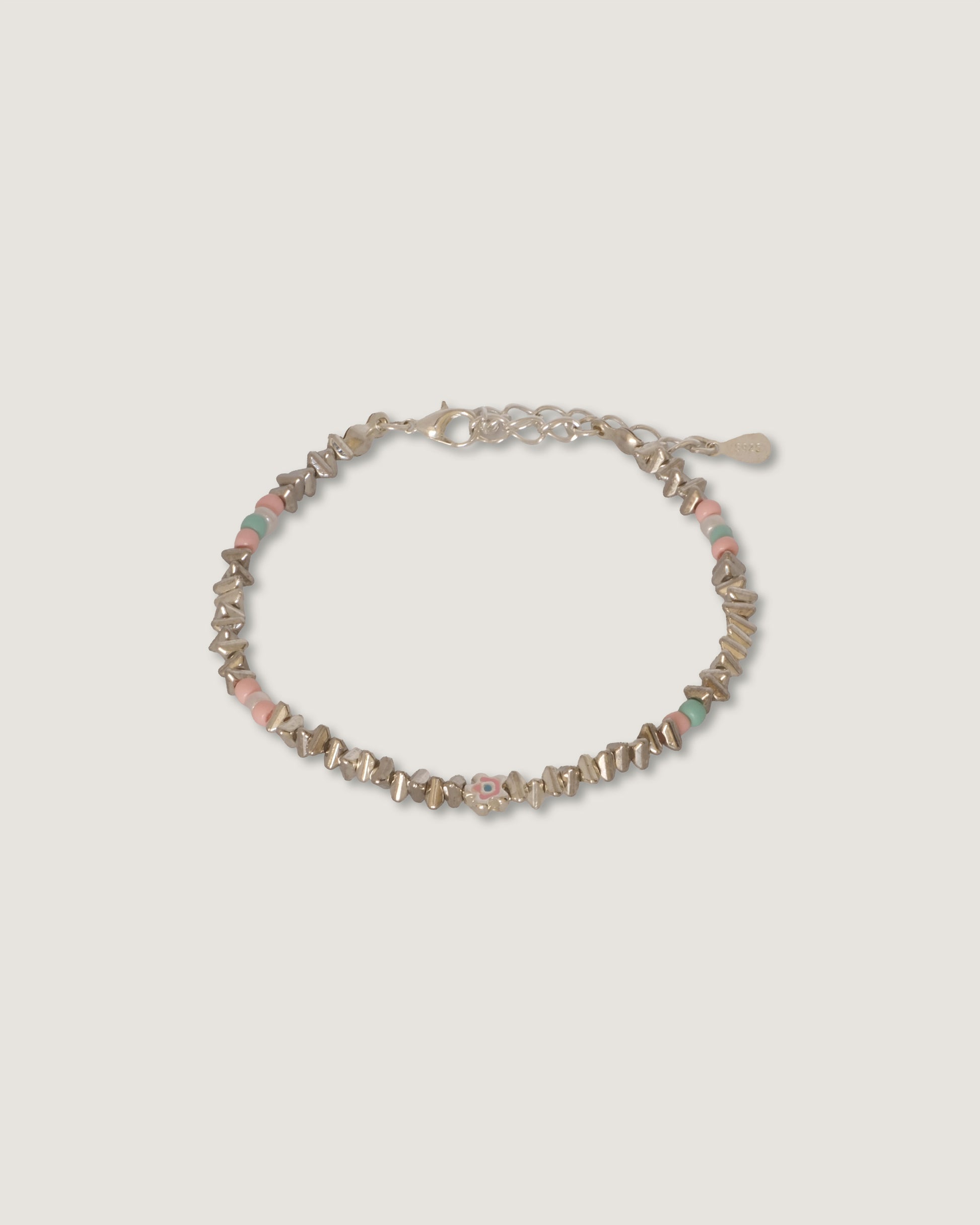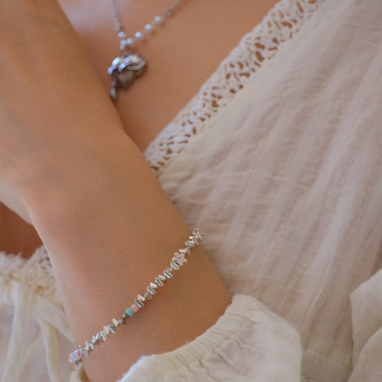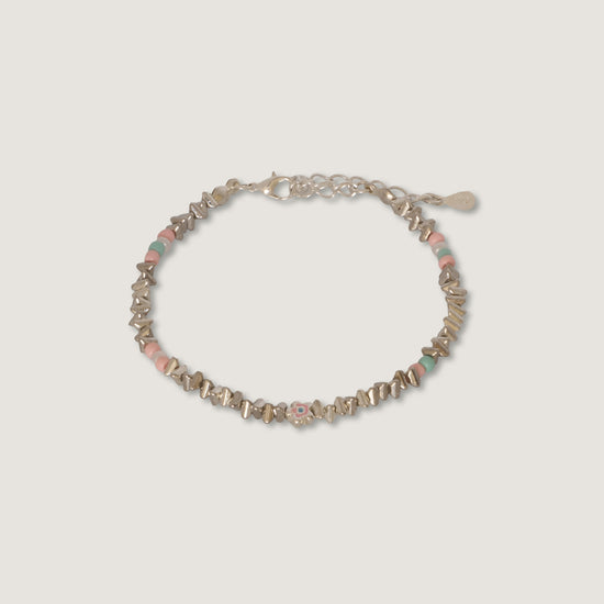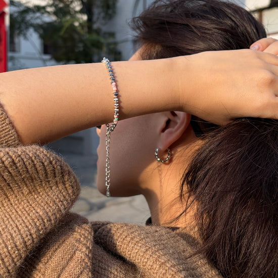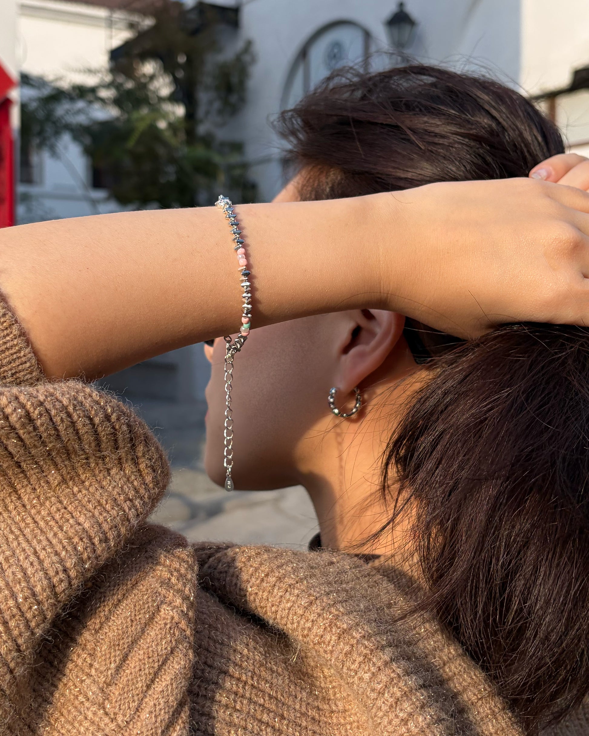 Pulsera con cuentas irregulares que aportan textura y un acabado orgánico.